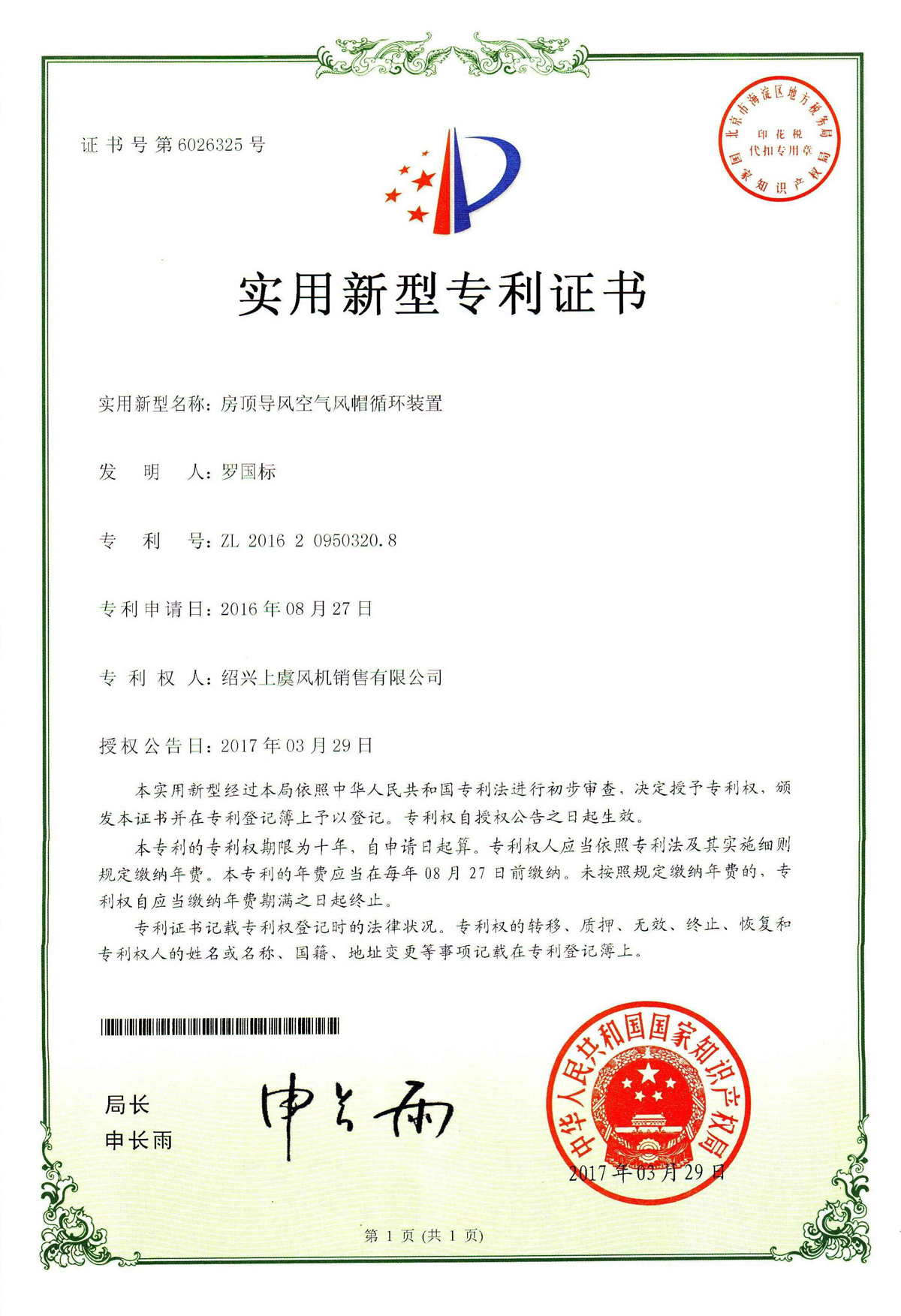 | 房頂導(dǎo)風(fēng)空氣風(fēng)帽循環(huán)裝置專利證書(shū) |