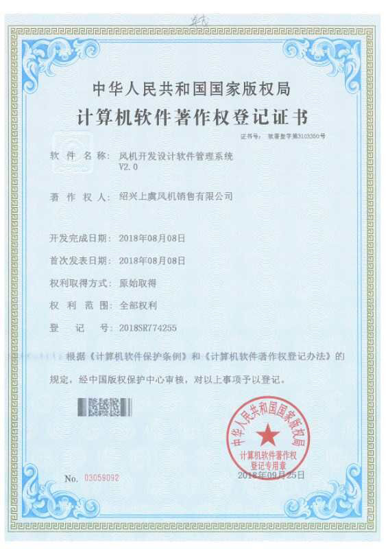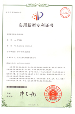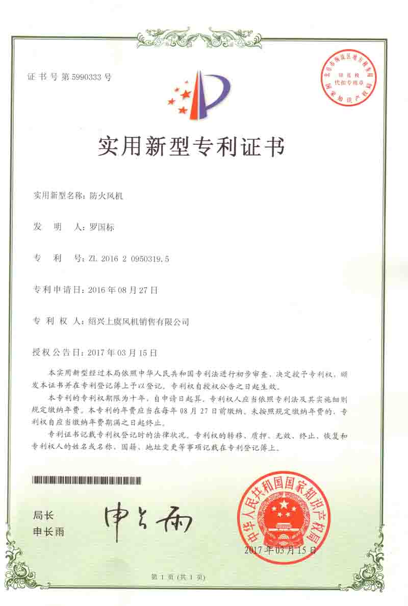 | 防火風(fēng)機(jī)專利證書(shū) |