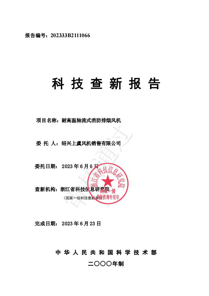 科技查新報(bào)告(耐高溫消防排煙風(fēng)機(jī)) |